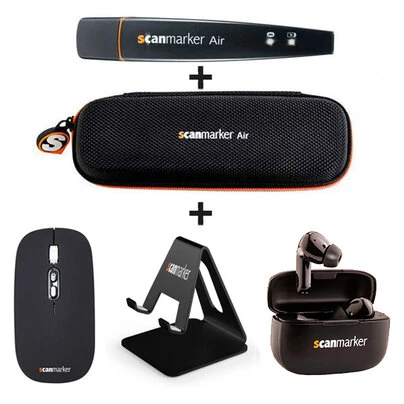 Obsahuje: 1x Pouzdro ScanMarker, 1xSkener Scanmarker Air, 1x sluchátka ScanMarker, 1 x myš ScanMarker, 1 x stojan